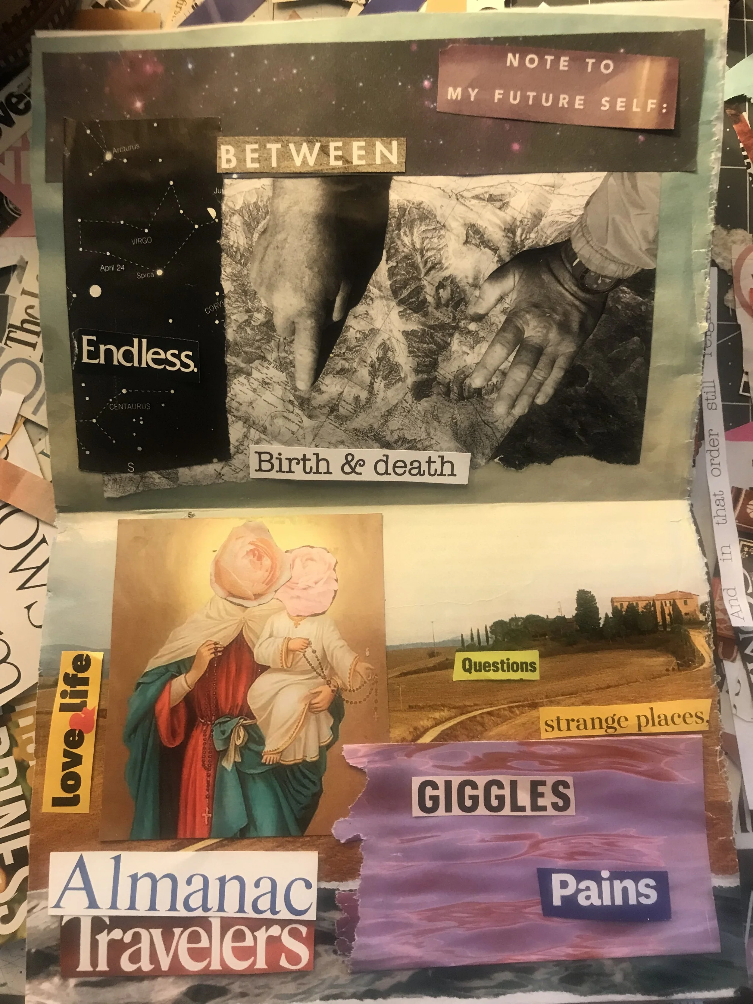 (Art: “Note to Future Self”, collage poem, Visual Diary, page 15)